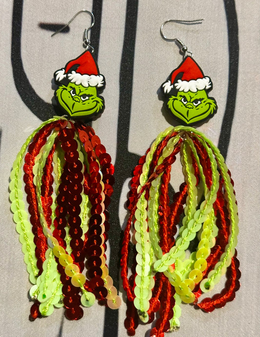 Sequin Tassel Earrings w/Christmas charm